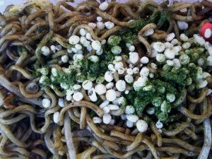 (3)히가시무라야마 흑 소바・・・600엔 도쿄도 히가시무라야마가 발상지인 지역 명물로, 오징어 먹물과 흑주, 흑초를 블렌드한 흑 소스로 만든 야키소바입니다. |