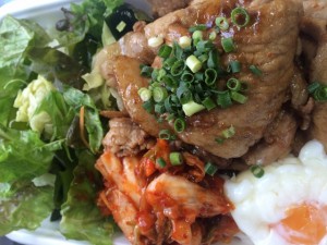 (5)LYB 돼지고기 덮밥・・・800엔 일본 최고 후지산 기슭에서 자란 국산 돼지고기를 비법 소스로 구워낸 덮밥입니다. 비전 양념에는 「도쿄도 지역 특산품 인증 식품」으로 인정된 도쿄 아오가시마의 천연 소금을 사용하고 있습니다.