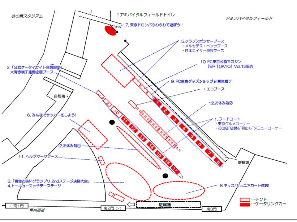 그 외에도, FC 도쿄 보급부 코치가 진행하는 "미니 축구 코너"와 "청적 개그 그랑프리 2nd 스테이지 결승 대회", "도쿄 매치데이 스테이지", "클럽 스폰서 부스" 등 알찬 내용으로 개최되오니, 꼭 모두 함께 모여 경기 전후의 즐거운 시간을 만끽해 주시기 바랍니다!