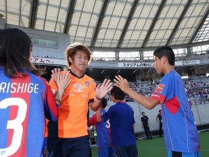 경기 전 선수 입장 시, 선수와 손을 잡고 입장합니다.