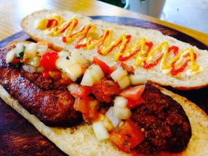 케이터링카(2) 초리판・・・900엔 본고장 아르헨티나에서 수련한 수제 소고기를 사용한 아르헨티나 소시지를 넣은 빵입니다. |