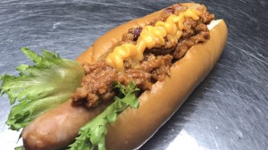 케이터링카(2) 칠리도그・・・600엔 육즙 가득하게 구운 소시지를 달콤한 찐빵에 끼운 뜨겁고 엄청 맛있는 한 품! |