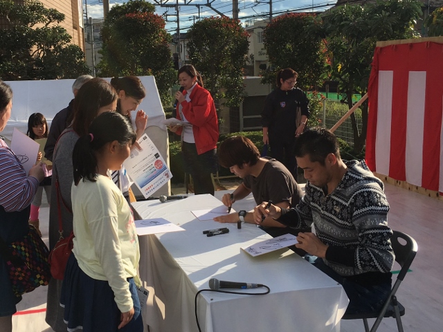 11/15(일), 이날은 평소에 신세를 지고 있는 도내 각지의 상점가를 선수들이 순회하며 감사의 마음을 전했습니다.