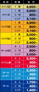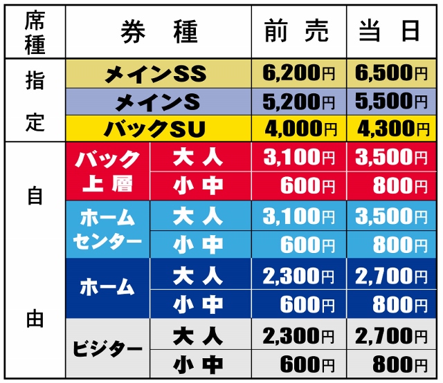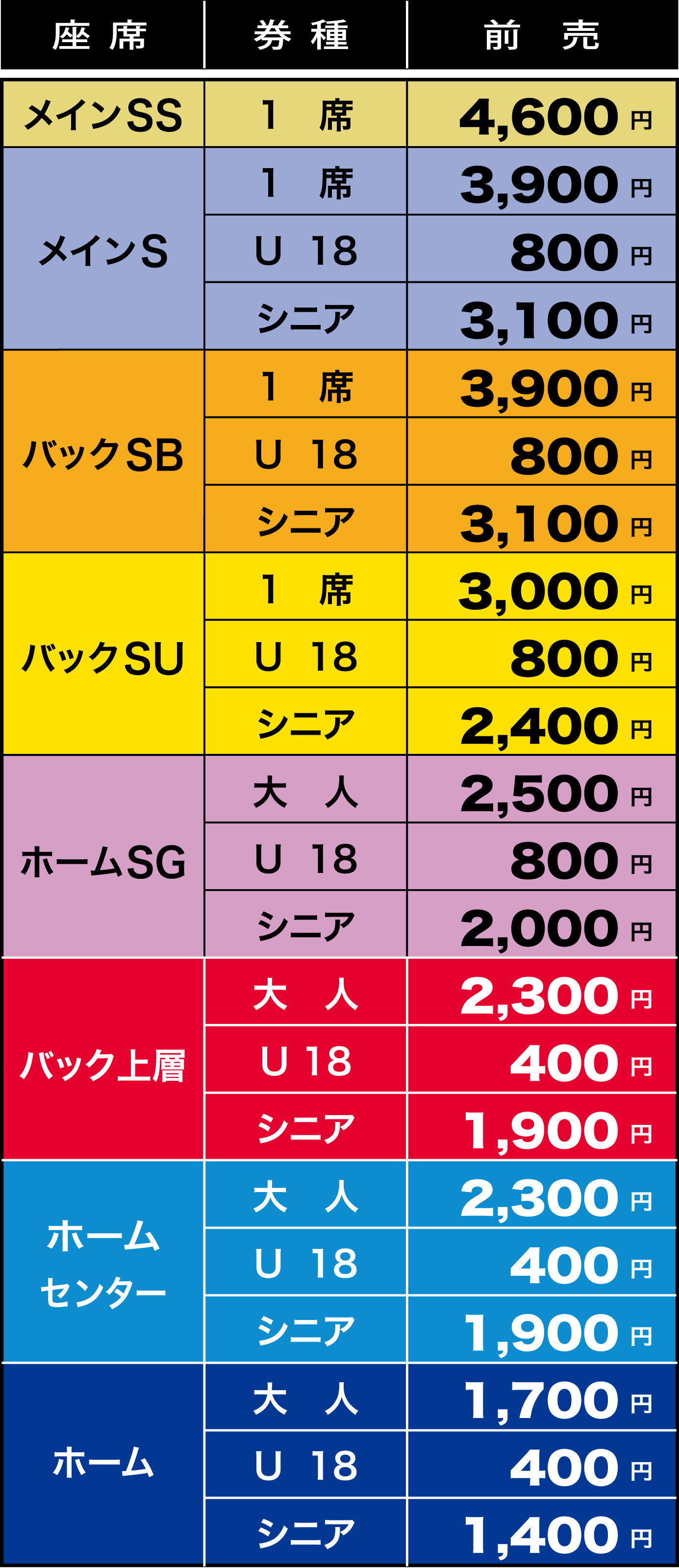 메이지 야스다 생명 J1 리그와 동일한 좌석 배치·가격입니다.