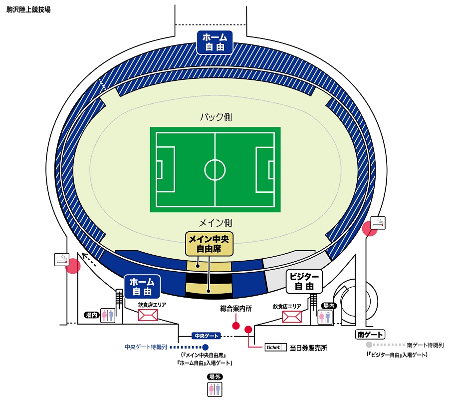 고마자와 올림픽공원 종합운동장육상경기장(메인 스탠드 쪽) 정문 게이트 옆 당일권 매표소 1곳