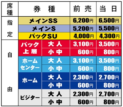・『백 SB 지정석』『홈 SG 지정석』은 SOCIO만 판매합니다.
