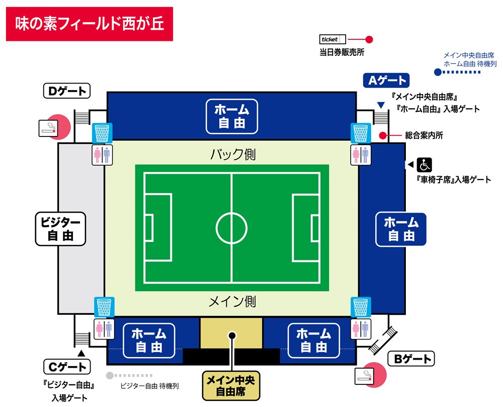 아지노모토 필드 니시가오카 정문 옆 당일권 매표소 1곳