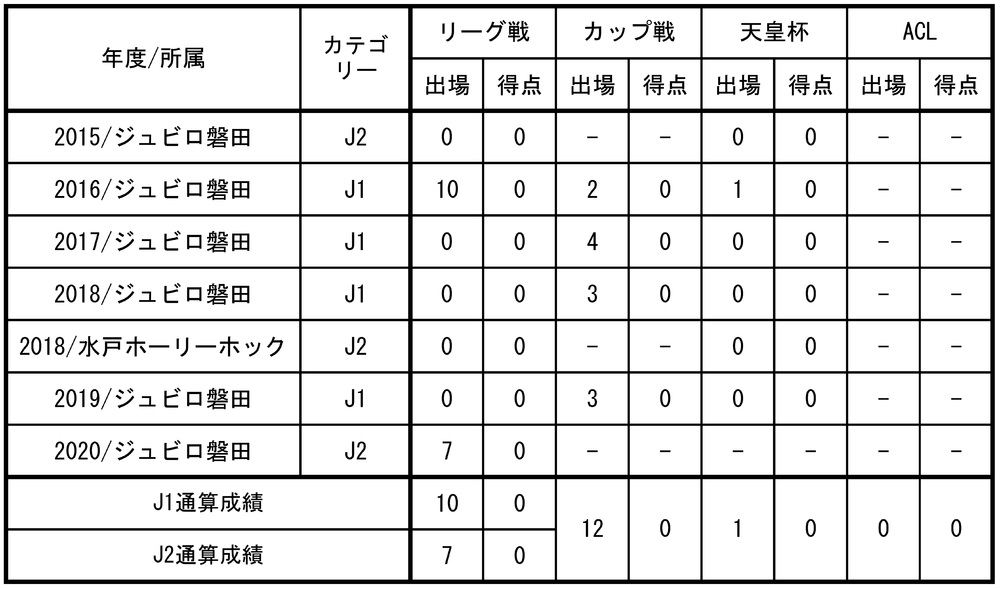 □기록된 출전 경기 (2020년 12월 9일 기준)