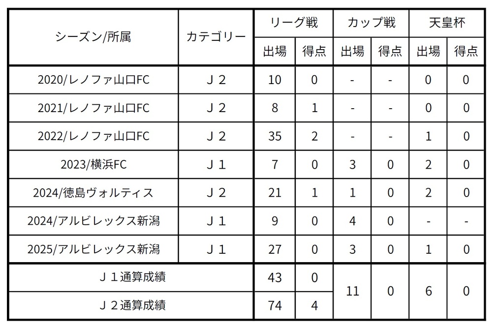 ※2020년, 2021년은 레노파 야마구치 FC에서 JFA·J리그 특별 지정 선수로서 활약했습니다.