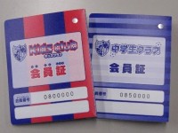 写真をご覧ください!今シーズン、キッズクラブ・中学生クラブのみなさまにプレゼントする「選手カードホルダー」です。今年は会員証と一体化させました。また、会員証の面の右上に穴を開けています。これは、昨シーズンファンクラブテントでカードホルダーに穴を開けてテディベアDayのストラップを付けているキッズを見かけ、「なるほど、これはおもしろい!」と感心した事から製作の運びとなりました。