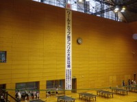 小平市役所に作成していただいたワールドカップ南アフリカ大会出場記念の懸垂幕が、小平市民総合体育館に掲出されました。