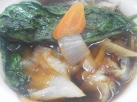 ⑦お皿に豆腐→野菜→ピータンの順で盛り付け、最後に⑥のたれをかけて出来上がり♪