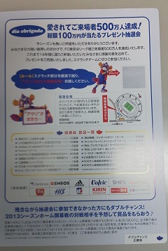 そして…ヘッドラインでみなさんにお知らせしていますが、開幕戦で『2013ハッピードリームキット』を販売します!2013シーズンを応援していただけるように応援グッズをセットで販売するのと同時に、抽選ではありますが、"夢"のような企画に参加できる権利を購入していただくことができるんです!!どのような内容の"夢"企画があるのか、来週にはみなさんにお知らせできると思いますが、ファン・サポーターのみなさんに喜んでいただけるようなものがたくさんありそうです!当日は先着順、ではなく抽選になりますので、焦らずに書籍売場までお越しくださいね。