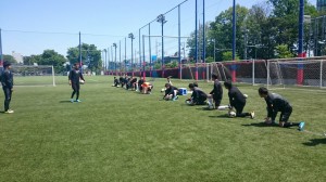 矢野フィジカルコーチによる走り方や動き作りの講習。動き作りの大切さをこちらも体感しました。