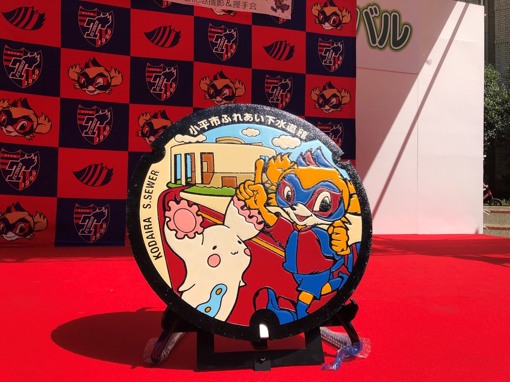 9/7(土)小平市中央公園にて「FC東京×小平市 コラボマンホール蓋」の完成記念お披露目式が行われました。