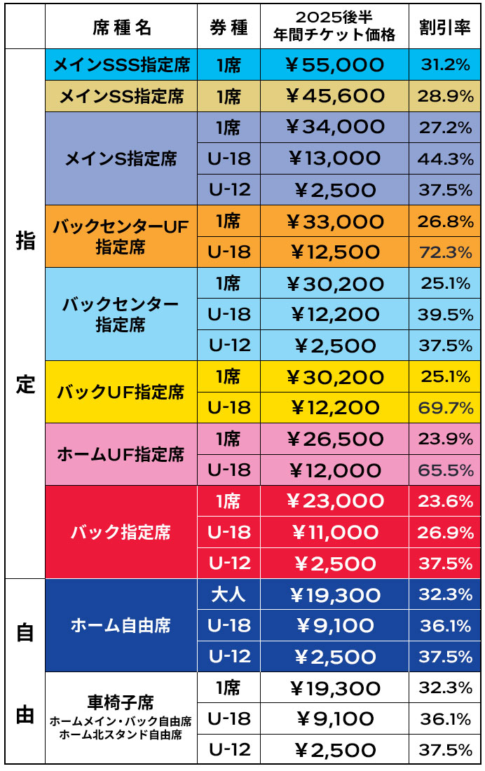 - 「2026/27 시즌」만의 연간 티켓도 판매합니다. SOCIO의 연수 카운트 및 2025 시즌부터의 동일 좌석 지속 권리는 「2026/27 시즌」만의 신청까지 적용됩니다.