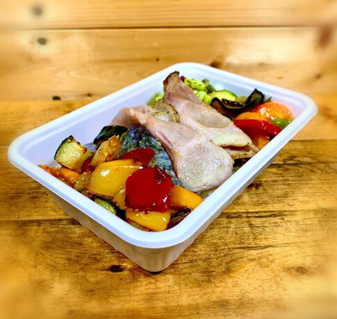 • イタリア食堂くってけ亭 白身魚の彩り野菜バルサミコソースと炙りローストポーク1,200円