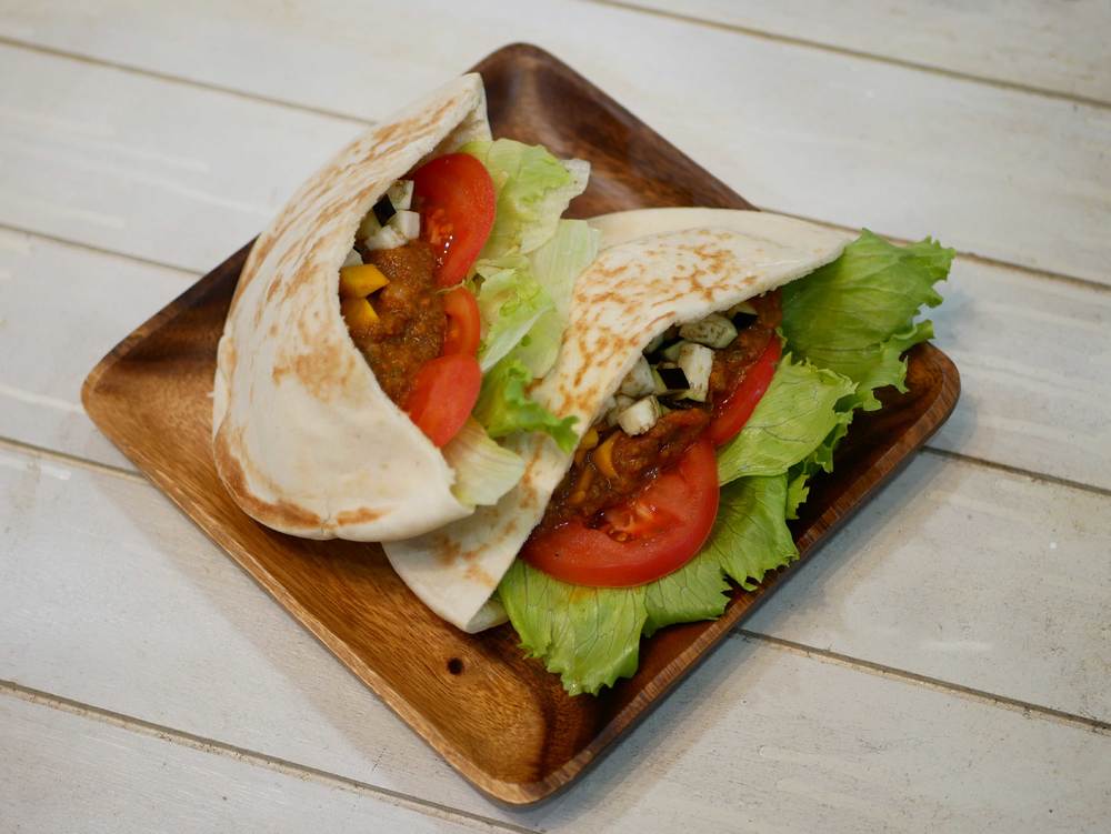 「モチモチピタパンとキーマカレーの相性バッチリなカレーピタサンドです」