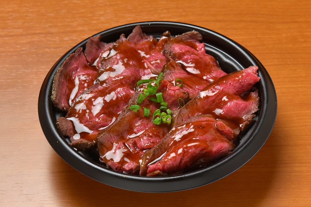 一番人気のグルメです。柔らかく味わい深いローストビーフににんにく醤油ダレが美味しさを引き立てます。