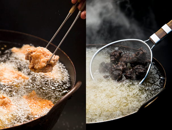 東京金のからあげは、東京の塩をつかった塩だれベースの唐揚げと黒の唐揚げは、カカオの豆を練り込んだ唐揚げです。一度に2種楽しめる唐揚げミックスです。
