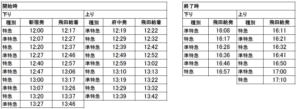 下り…飛田給発16:08~16:57の特急・準特急/計6本