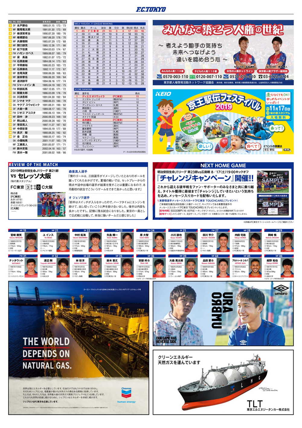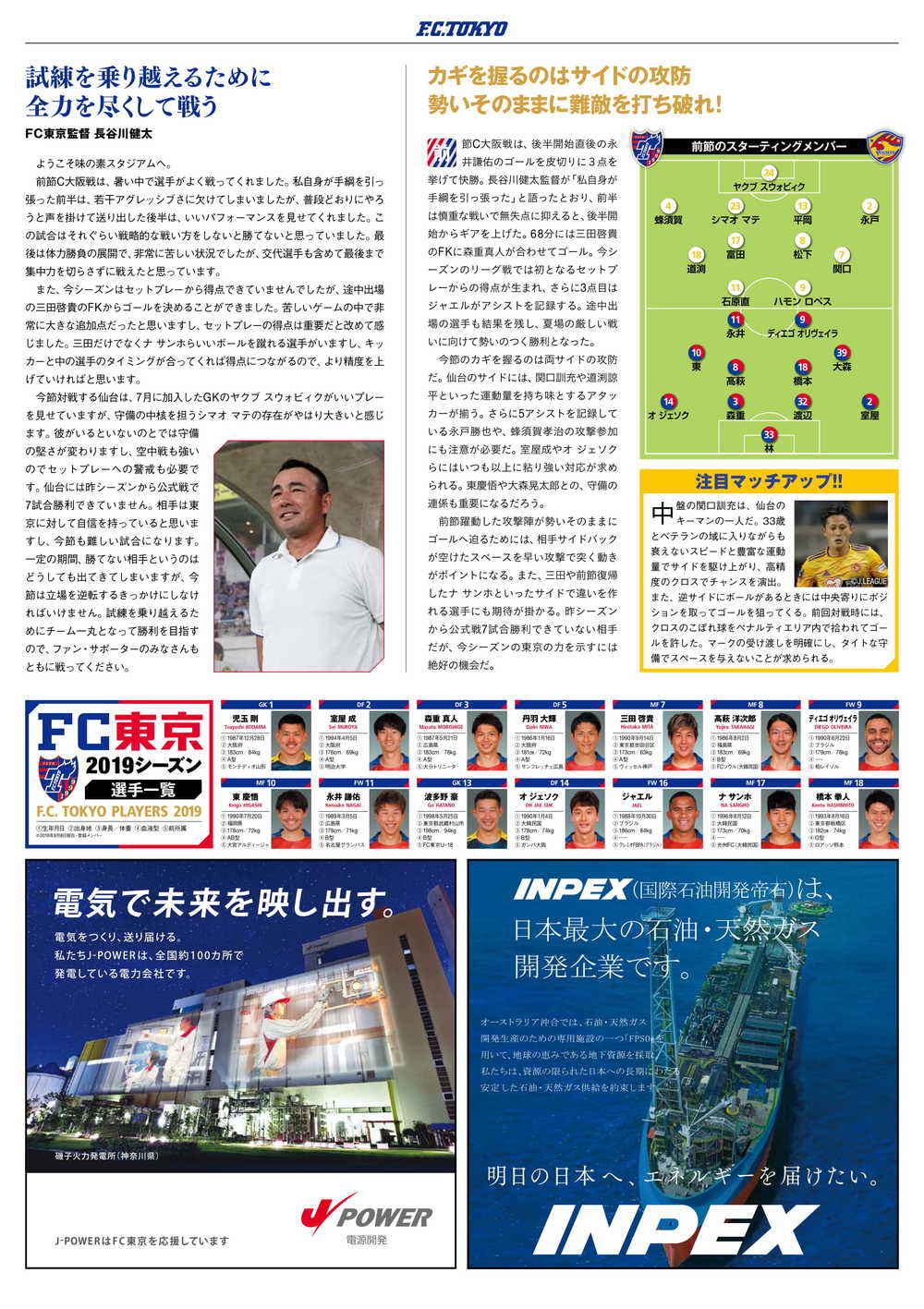 8/10(土)2019明治安田生命J1リーグ 第22節 vs ベガルタ仙台(19:00キックオフ/味の素スタジアム)のオフィシャルマッチデープログラムについて、下記のとおりご案内いたします。