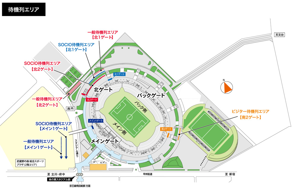 ・SOCIO以外の方(一般の方)は、試合当日のデーゲームは9:00、ナイトゲームは10:00より直接待機列エリアにお並びください。(チケット販売状況や天候により移動時間が早まる可能性があります。その都度HPなどでお知らせいたします)