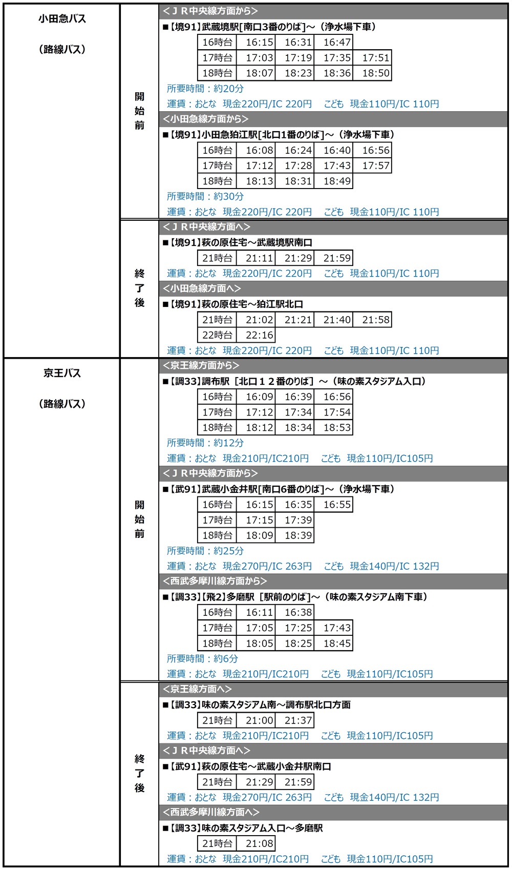 8/23(日) 2020明治安田生命J1リーグ 第12節 vs湘南ベルマーレ(19:00キックオフ/味の素スタジアム)にて運行されるシャトルバス・路線バスについてご案内いたします。