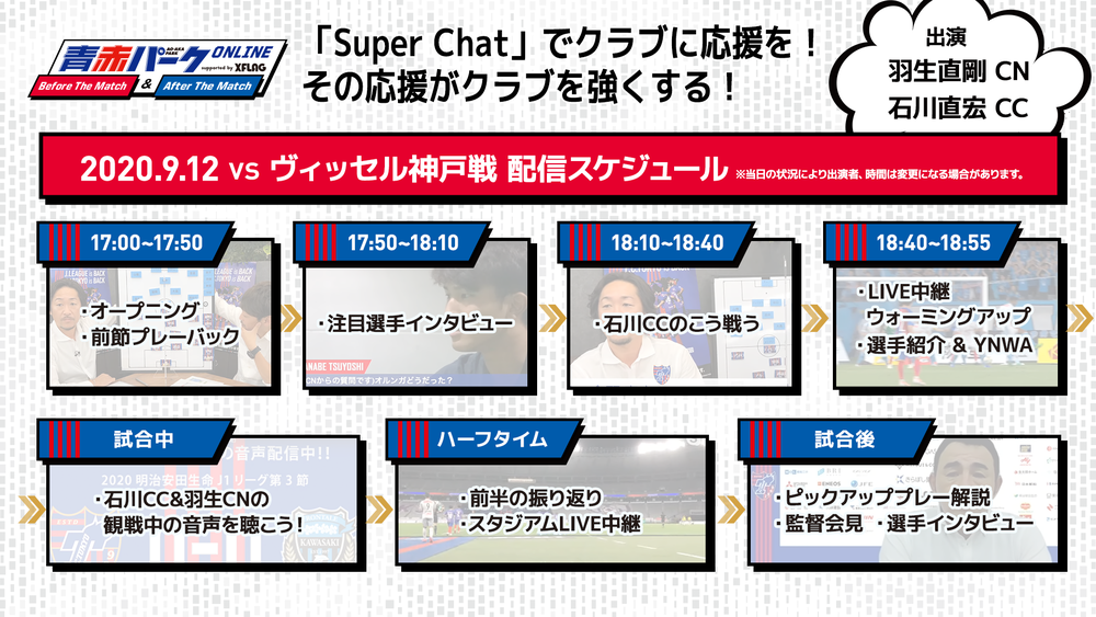 ① 『青赤パークオンラインBefore The Match supported by XFLAG』(試合前)