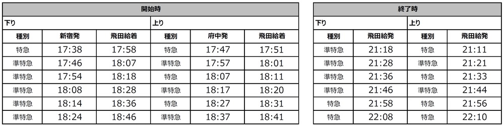 上り…飛田給発21:11~22:10の特急・準特急/計6本