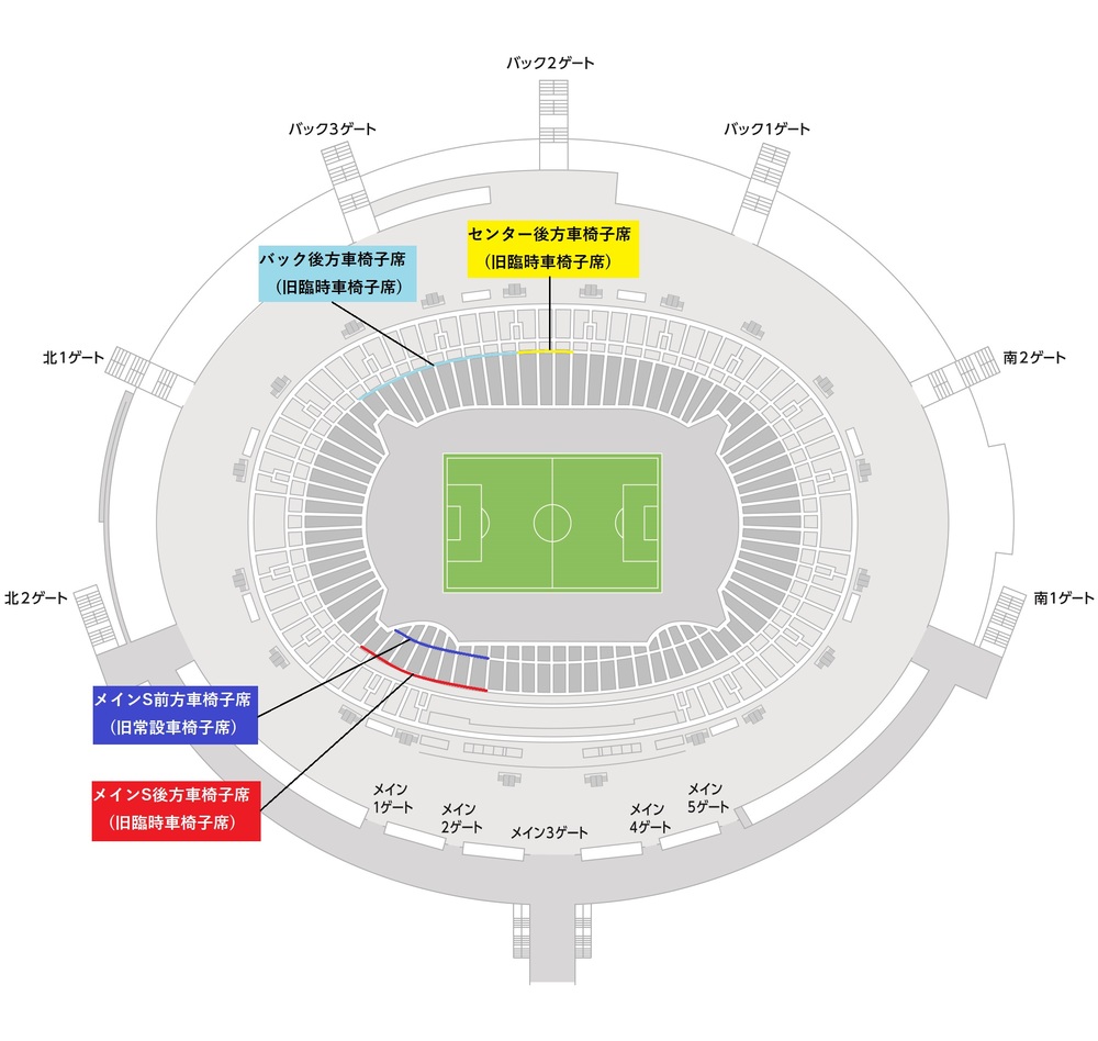 「メインS後方」・「バック後方」・「ホームセンター後方」車椅子席(旧臨時車椅子席/約38席)