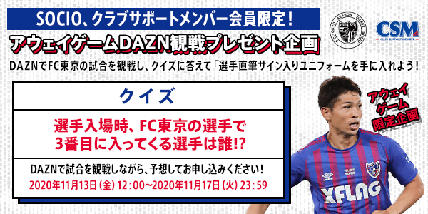 SOCIO、クラブサポートメンバーのみなさまにFC東京のアウェイゲームを楽しんで視聴いただけるよう、アウェイゲーム特別企画として実施している「選手直筆サイン入りユニフォームを手に入れよう!」企画もあと2回!