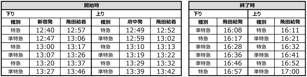 下り…飛田給発16:08~16:57の特急・準特急/計6本