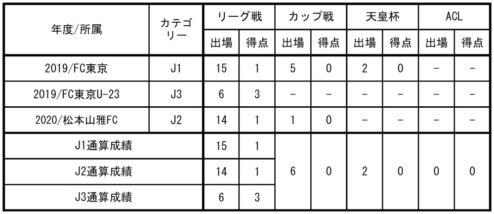 □出場記録(2020シーズン終了時点/国内クラブ所属時のみ)