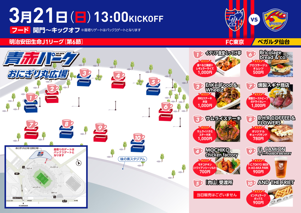 3月21日(日) 2021明治安田生命J1リーグ 第6節 FC東京 vs ベガルタ仙台(13:00キックオフ/味の素スタジアム)にて『青赤パーク』を開催いたします!