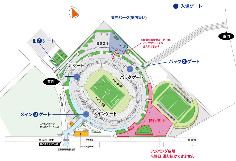 バナー(旗、横断幕)の事前準備をされる方には、開門120分前にスタジアム敷地内の「ユーロスポーツ味の素スタジアム店横三角広場」にお集まりください。