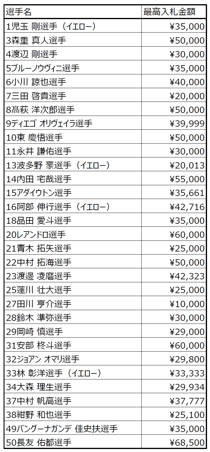 12月4日(土)12:00より実施している『Big Thank You Day~今シーズンも、ありがトーキョー!~』チャリティーオークションの途中経過をお知らせいたします。