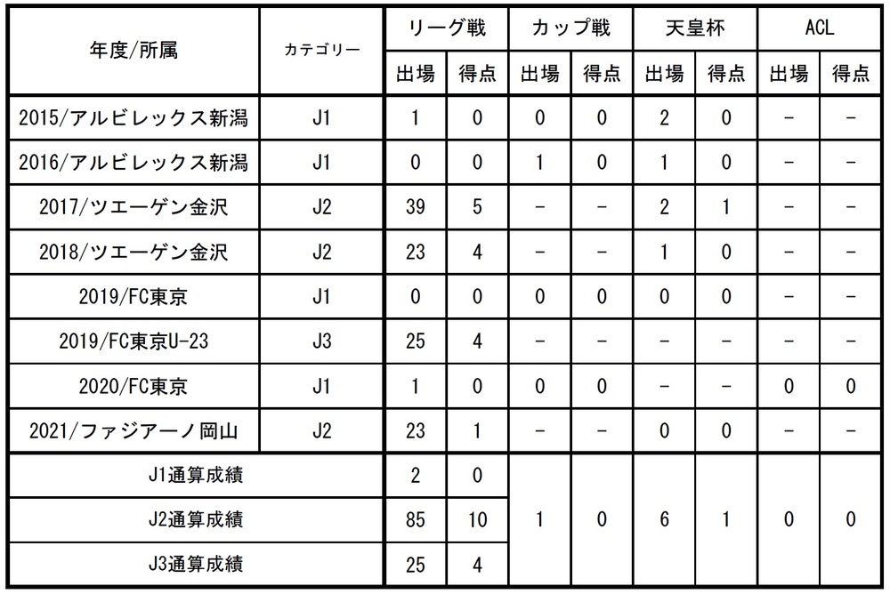 2015年U-17日本代表、2016年U-18日本代表、2017年U-20日本代表