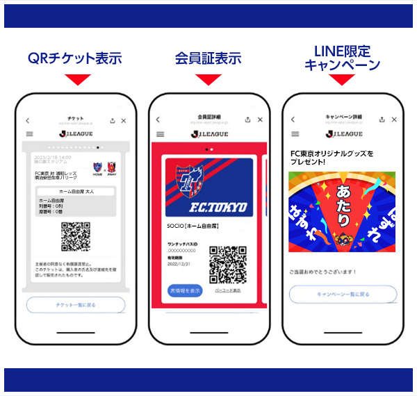 LINE公式アカウントから、QRチケットや会員証の表示ができるほか、その場で抽選結果が分かるLINE限定キャンペーンの参加も可能となります!