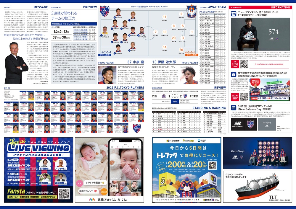 4月29日(土祝) 2023明治安田生命J1リーグ 第10節 vsアルビレックス新潟(15:00キックオフ/味の素スタジアム)のオフィシャルマッチデープログラムについて、下記のとおりご案内いたします。