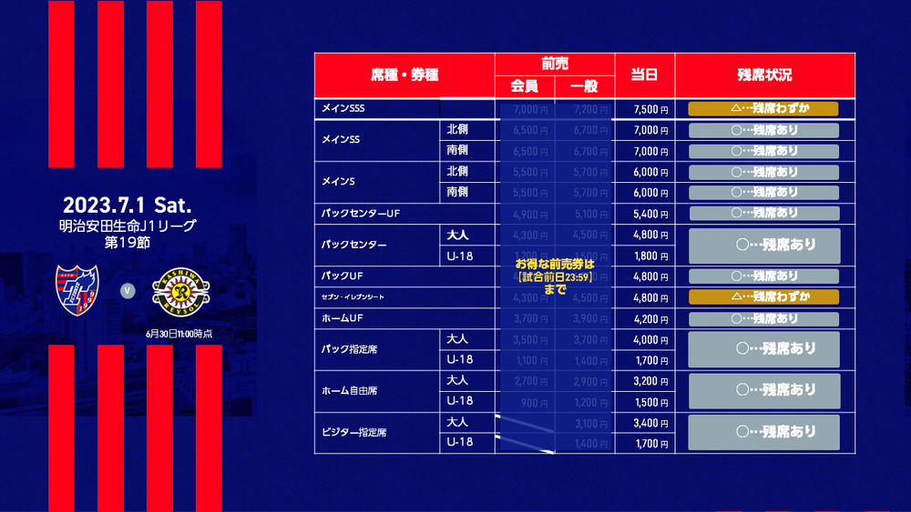 チケットFC東京(Jリーグチケット)でのみ販売いたします。