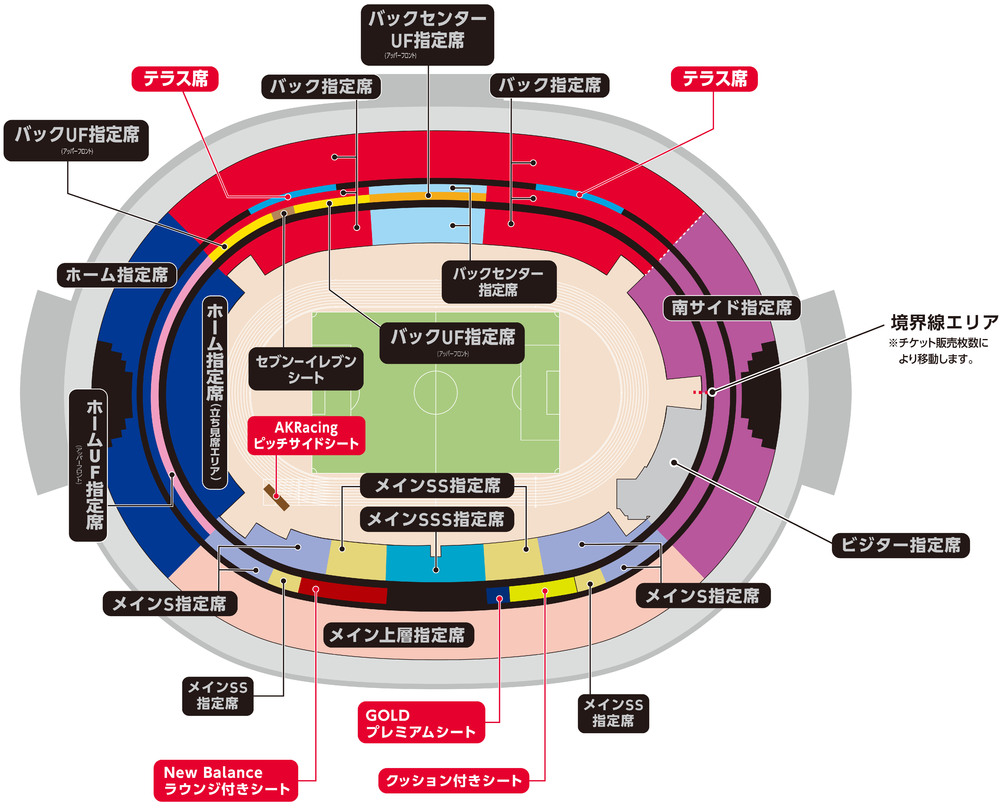 ・ピッチサイドシートでご観戦の場合、広告看板やボールパーソン等の運営スタッフ、カメラマンなどにより、ピッチの一部が見えない可能性がございます。予めご了承のうえ、お買い求めください。