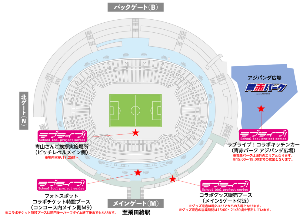 ※特典引換および抽選会はハーフタイム終了まで、フォトスポットの設置は試合終了後までの実施となります。