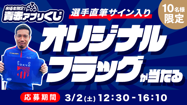 3月2日(土)FC東京vsサンフレッチェ広島にて、FC公式アプリを活用した来場者限定の「青赤アプリくじ」を実施します。