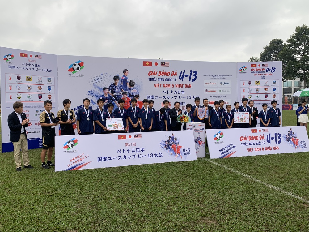 決勝戦後には今大会全出場チームの選抜選手によるオールスター戦(ベトナム選抜vs日本・マレーシア選抜)が行われ、深川からは、日本・マレーシア選抜チームとして山口コーチが監督として指揮を執り、瀬田竜輝、原陸斗、佐渡陸の3選手が参加しました。結果は残念ながら1-3で敗れましたが原陸斗がゴールを決め、応援していた選手たちも大盛りあがりでした。
