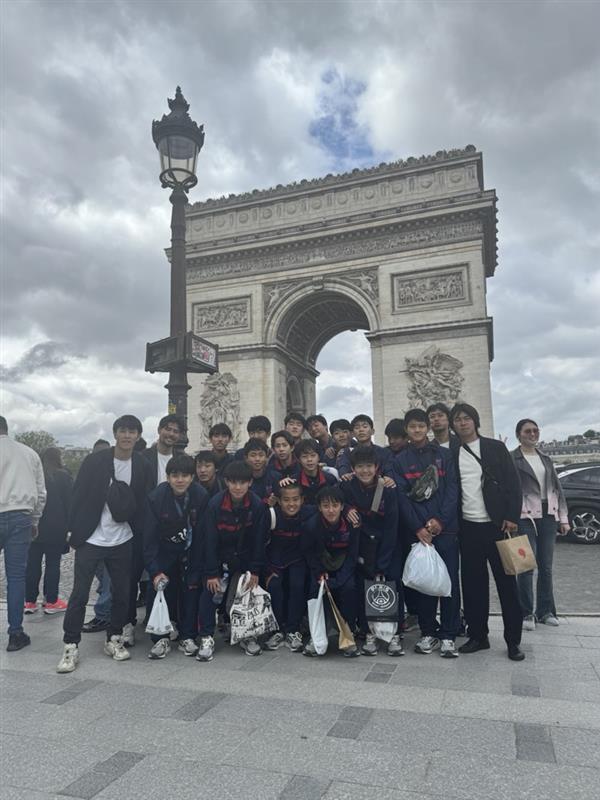 観光の最後はシャンゼリゼ通りで自由時間をとる前には、全員でエトワール螺旋門の前で記念撮影!