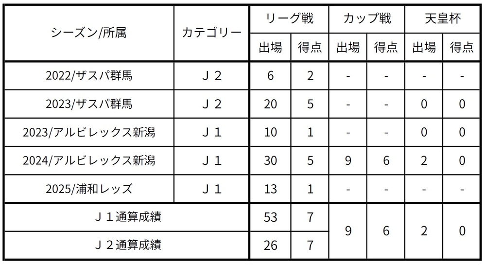 □出場記録(2025年6月7日時点/国内クラブ所属時のみ)