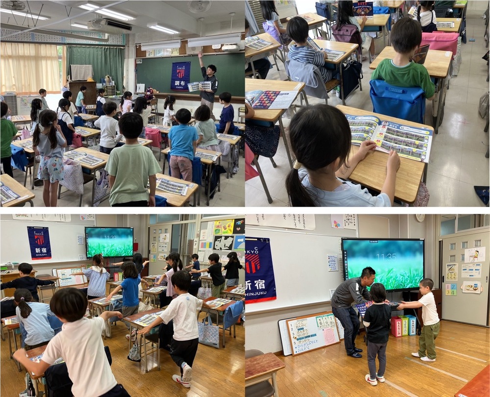子どもたちの『体力』『スポーツに親しむ機会の向上』などに焦点を当てた小学校の体育教材となる2025年度版『あおあかドリル』がクラブオフィシャルパートナーである帝京大学のご協力により完成し、今年は新たに新宿区も加えて都内の約190の公立小学校、17,000人を超える小学1年生に配布いたしました。
