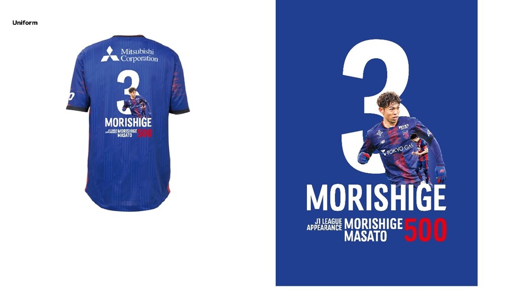6月14日(水)2025明治安田J1リーグ vsセレッソ大阪にて、森重真人選手がJ1リーグ戦通算500試合出場を達成いたしました。これを記念して森重真人選手J1リーグ戦通算500試合出場記念グッズを受注販売いたしますのでぜひお買い求めください。
