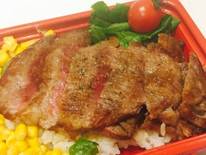 (3)秋川牛ステーキ重・・・1,800円 秋川牛A5ランク希少部位を贅沢にステーキ重にして数量限定販売!!最高級黒毛和牛をお楽しみ下さい。 |